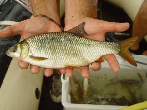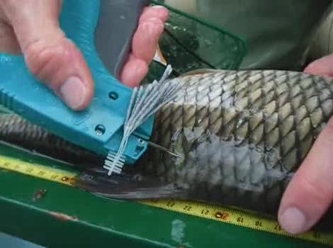 Pri tem smo uporabili tehniko označevanja z oznakami, kot je razvidno iz slike. Označili smo predvsem platnice ter nekaj primerkov bolena, ogrice in ploščiča. S to akcijo želimo pridobiti podatke o gibanju posameznih vrst rib na območju Spodnje Save in njenih pritokov.