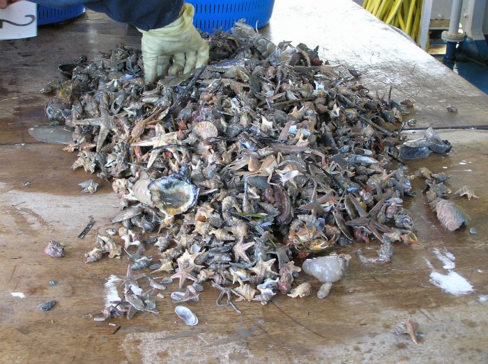 Vzorčili smo s strgačo oziroma ramponom. Posamezno vzorčenje je trajalo od 10 do 30 minut (odvisno od tipa morskega dna). Raziskovalno plovilo je hkrati vzorčilo z dvema strgačama.
