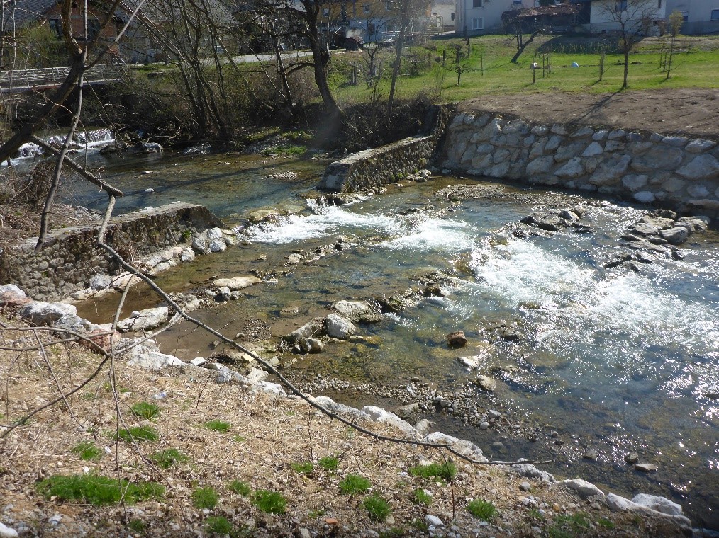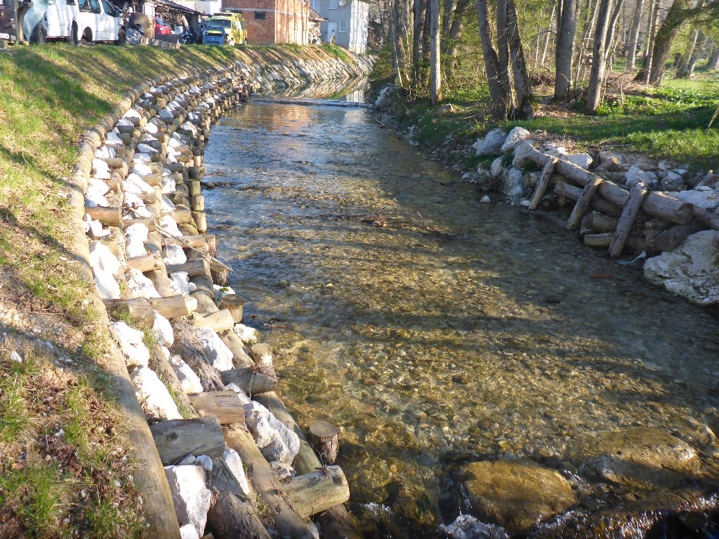 Slika 1: sanacija erozijskih poškodb na vodotoku Milka, zložena kašta in kamnita zložba