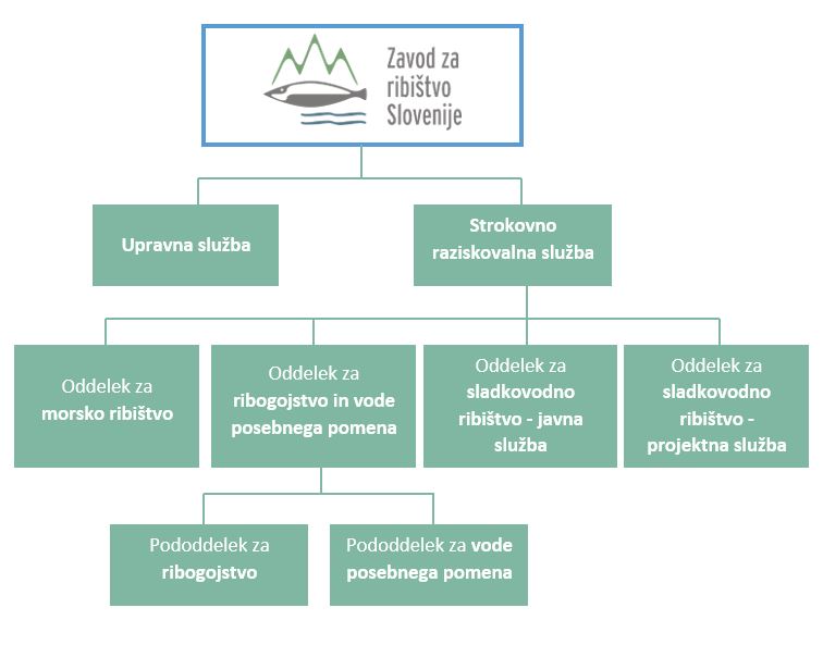 Delo Zavoda za ribištvo Slovenije je organizirano v naslednjih organizacijskih enotah: